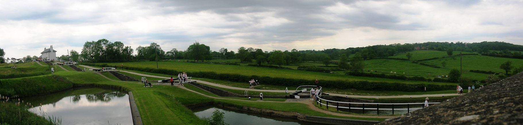 Foxton Locks is located on the Leicester line of the Grand Union Canal about 5 km west of Market Harborough and named after the nearby village of Foxton. There are ten canal locks consisting of two "staircases" each of five locks. Alongside the locks is the Foxton Inclined Plane, built in 1900 to resolve the operational restrictions imposed by the lock flight. It was not a commercial success and only remained in full-time operation for ten years. It was dismantled in 1926 but a project to re-create it commenced in the 2000s.