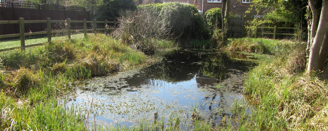 This small pond lies in the middle of housing but retains a natural character.