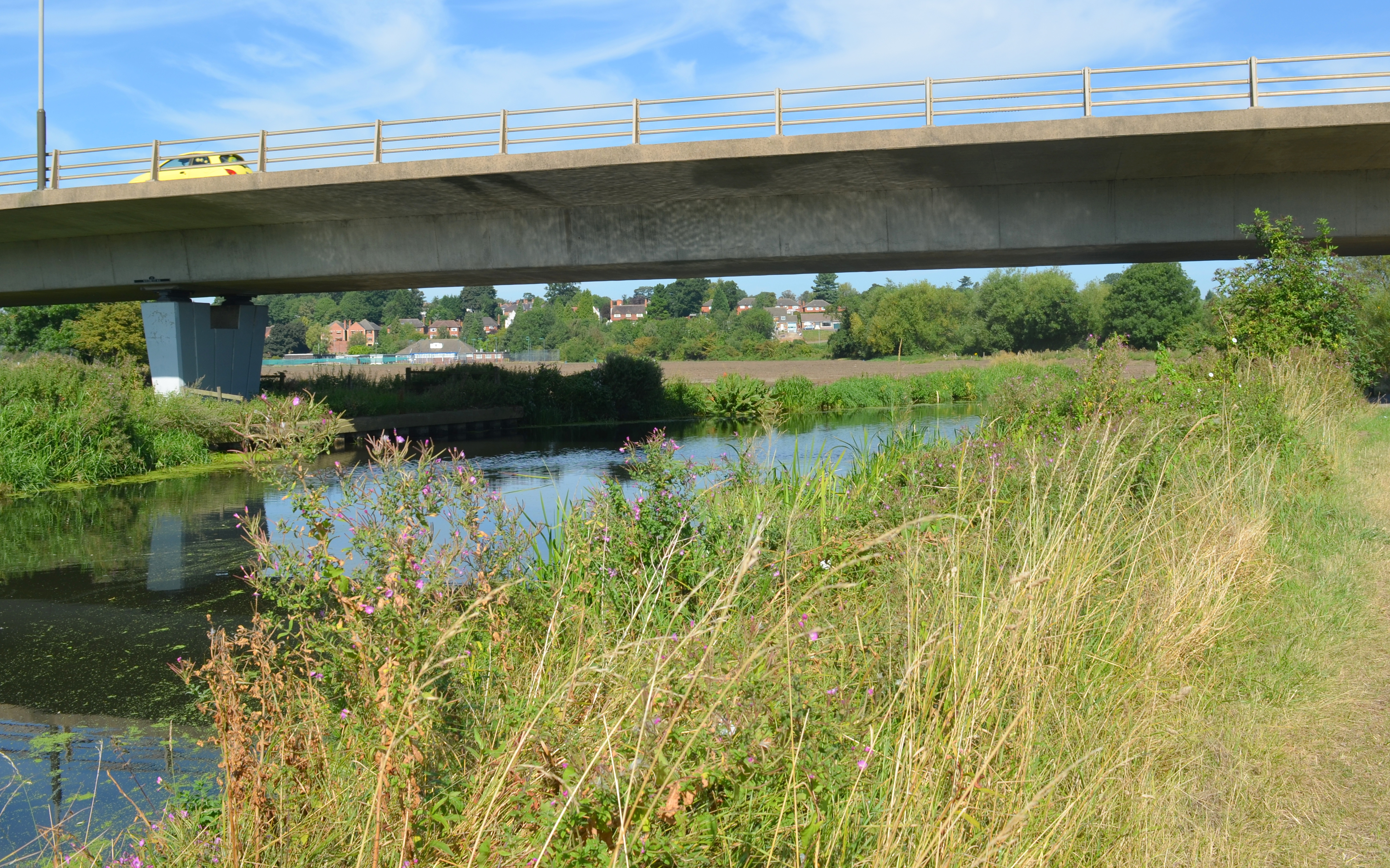 This mile long stretch of the River Soar lies between the Ellis Meadows wild place and A563 Watermead Way (see centre photo above). The footpath runs along the eastern bank of the river throughout, there is marina linked to the river just south of the Birstall roundabout (a.k.a. Red Hill Circle).