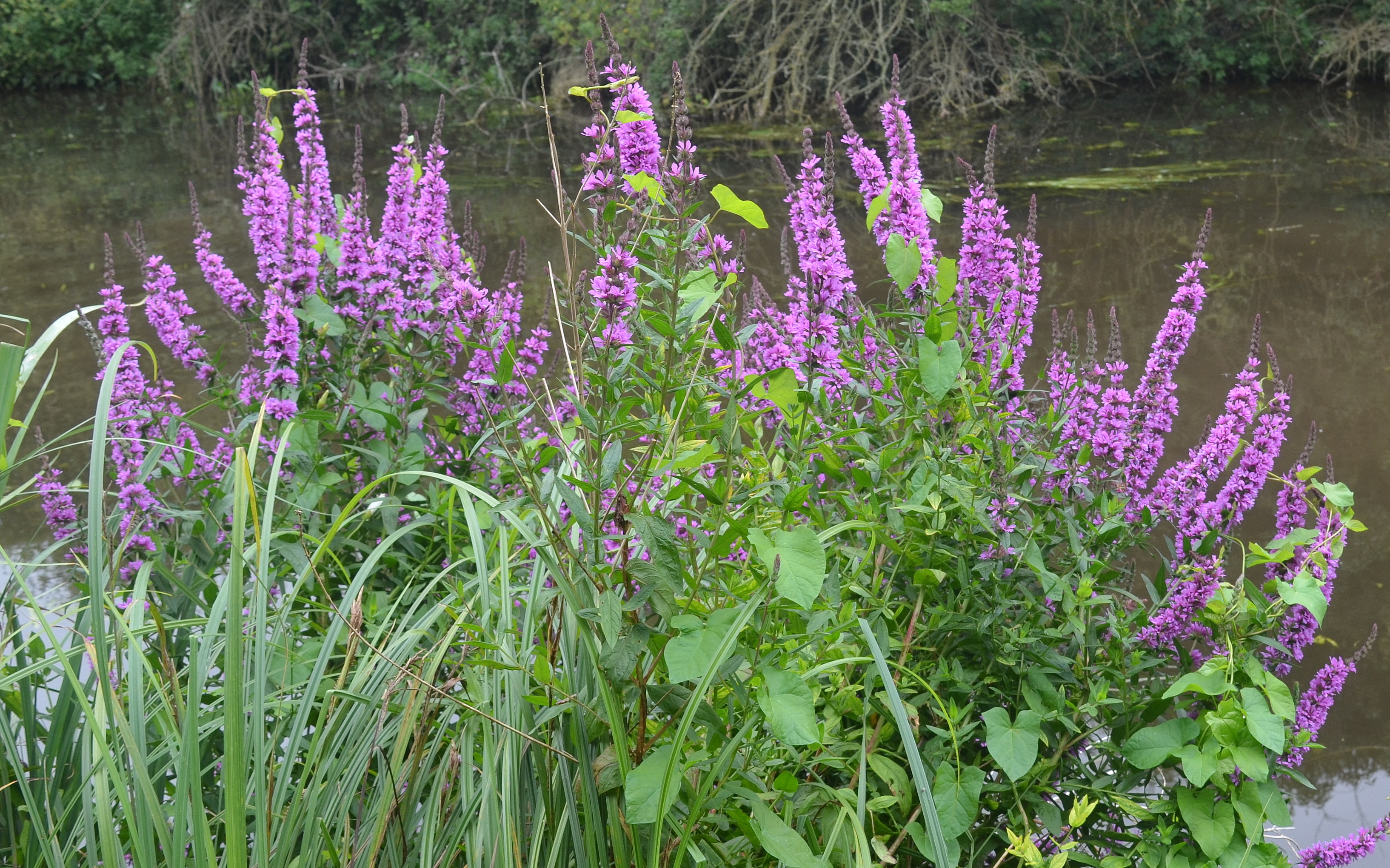 Water Margins: Purple Loosestrife (pictured above), Indian Balsam. Garden Angelica (recent colonist), Lesser Celandine, Marsh Thistle, Marsh Woundwort, Water Mint, Water Figwort.