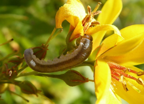 Sawflies are part of the insect order, Hymenoptera, together with bees, wasps and ants. However they are considered to be the most primitive group and form the sub-order - Symphyta. They differ from the bees, wasps and ants in not having a 'waist' and in their wing venation. Most female sawflies possess 'saw-like' genitalia which they use to cut through plant tissue in order to lay their eggs. All sawflies are harmless and cannot sting. In Britain there are around 107 different genera and about 500 species. The actual numbers constantly change as new species are added and others are lost. It is unclear how many can be found in Leicestershire and Rutland as it is a very under-recorded group.