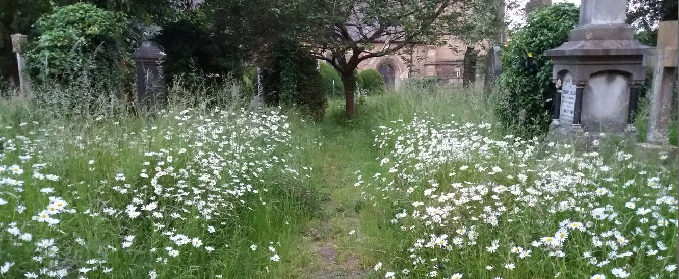 The older parts of the churchyard support some old grassland species such as Oxeye Daisy and Lady’s Bedstraw and also have a good stand of old trees.