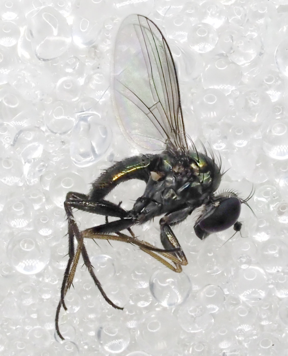 2.5mm. Chrysotus are small, compact dolichopids with the typical green metallic bodies.