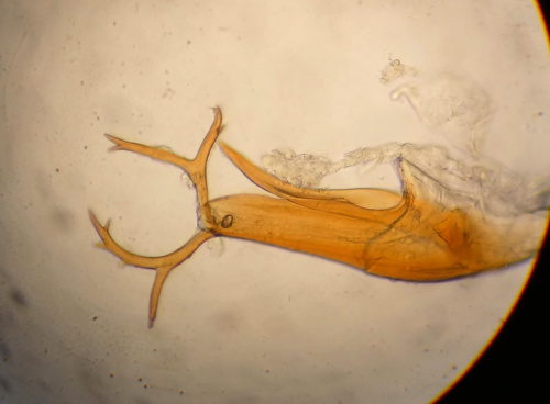 Photographs of specimens, from side and top view; dissectionof male genitalia; note host plant species