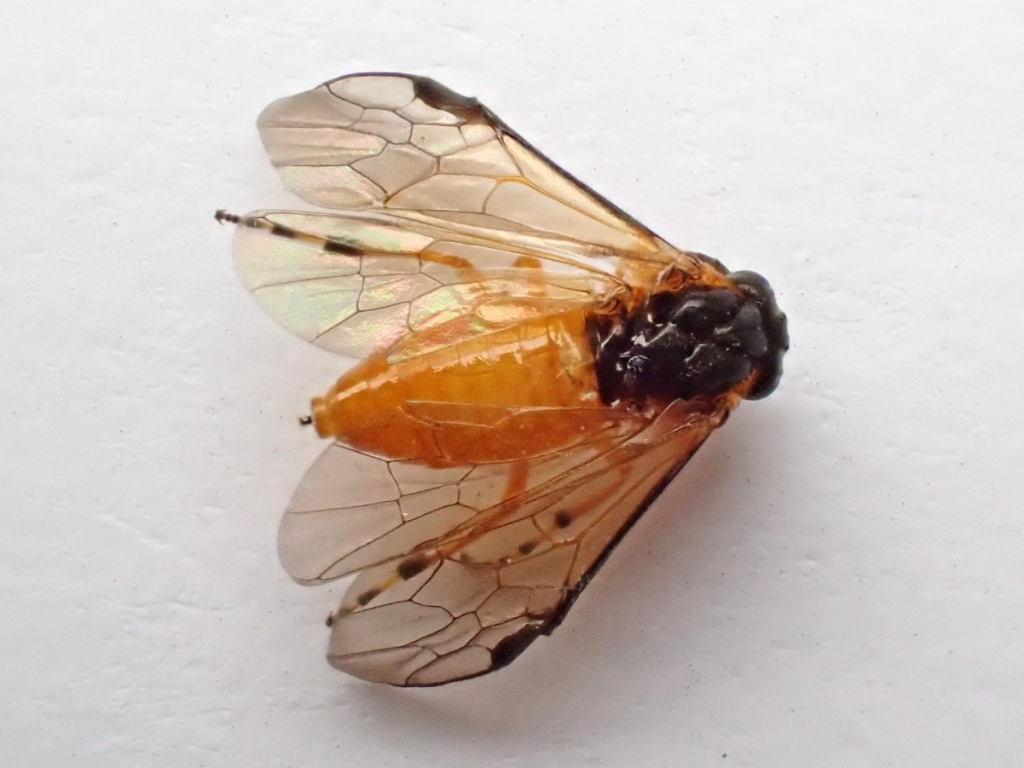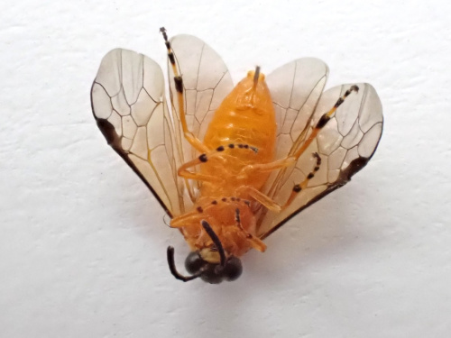Length 5 to 7 mm. Mainly orange with just the dorsal surface of the thorax black. Legs with black rings as with most Athalia species.