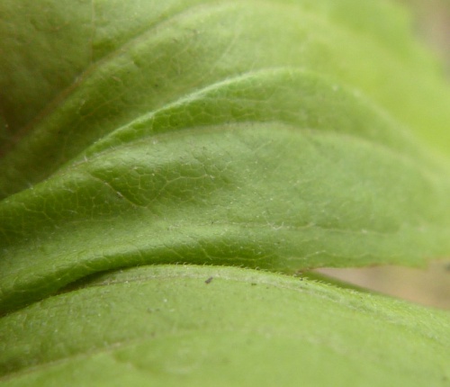 Leaves serrate, at least near apex; roughly hairy on both surfaces and stems hairy at least in top half