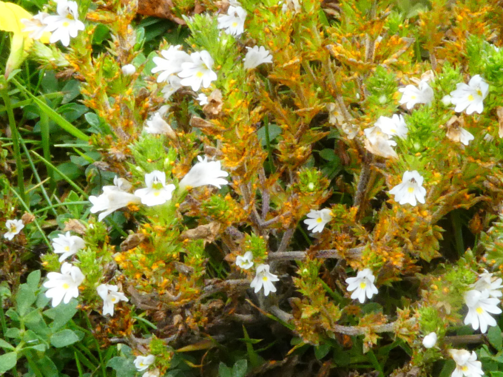 Plant Parasites of Europe includes the following UK species within the complex, depending on the host: Coleosporium campanulae (bellflowers); C doronici (Leopard's-bane); C euphrasiae (Eyebright, Red Bartsia, Lousewort, Yellow Bartsia, Yellow Rattle); C inulae (Elecampane, Ploughman's Spikenard); C melampyri (Cow-wheat); C petasitis (Butterbur, Winter Heliotrope); C senecionis (on Ragworts and some other species in Asteraceae); C sonchi (Nipplewort, Sow-thistles and some other species in Asteraceae); C tussilaginis (Coltsfoot, and other herbaceous species). See website for full list.