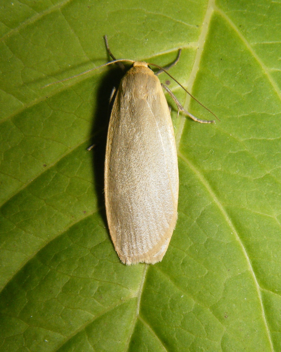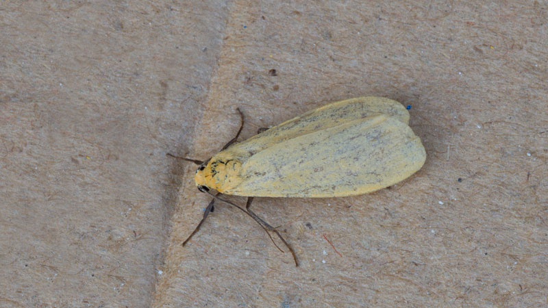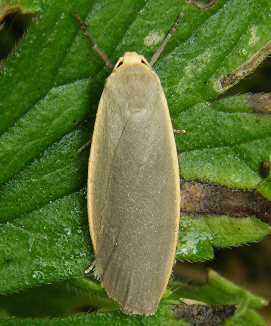 Wingspan 32-40 mm. Several of the Eilema species can be difficult to tell apart, but this moth has broader, more rounded forewings than many of the others. It can be quite greyish, but a yellowish form, straminola, does occur in places.