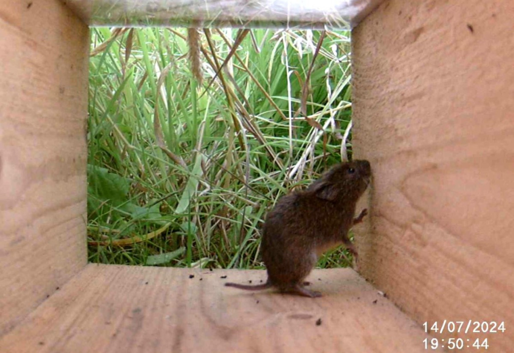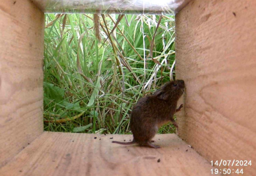 The Field Vole can usually be distinguished from the very similar Bank Vole by its more sandy coloured brown coat plus a shorter and hairy tail.