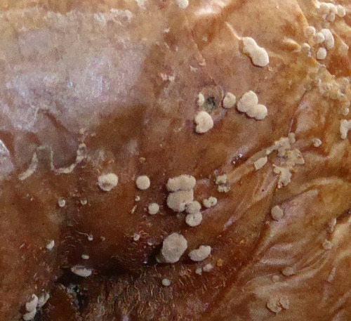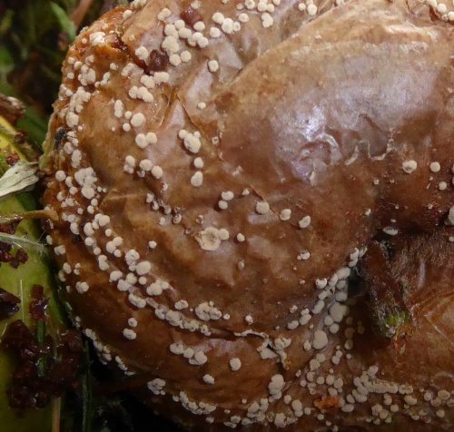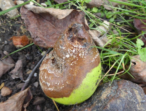 Photograph on host plant; note substrate and associated plant species. Microscopic examination may be needed to separate this species from others causing brown rot on fruits in the Rosaceae