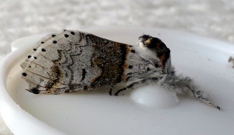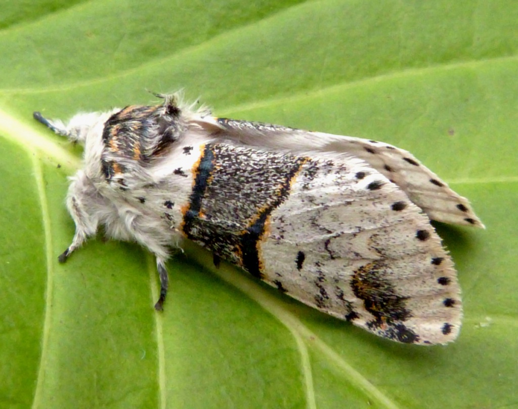 Wingspan 35 to 45 mm. Quite similar in appearance to Sallow Kitten, this species is however usually larger, and the outer edge of the grey wing bar is more smoothly curved.