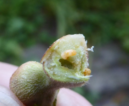 Galls contain pale orange larvae.