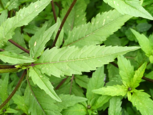 Leaves petiolate (stalked) and lobed, usually deeply and nearly to the midrib, but may be less. The leaflets themselves are not lobed.  The petioles are winged to the base.  The barbs on the edge of the achenes are backwards directed.  (Note that Stace (4th edition) is not entirely certain that the achenes always have the latter characteristic)