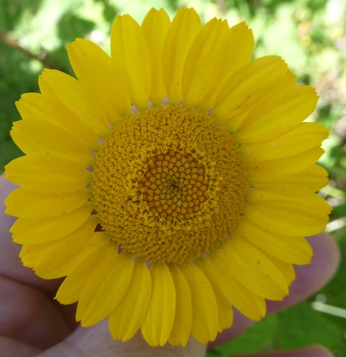 A clump forming plant, similar to Corn Marigold but with finely divided leaves, mid-green above and downy-grey beneath. Golden yellow flowers are held on uprights stems.