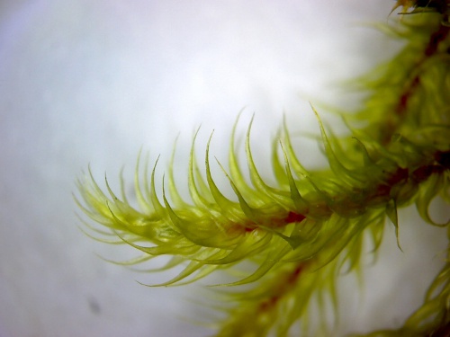To identify some mosses, you may need to look at the microscopic details of the leaves - e.g. the cell shape in different parts of the leaf; whether there is a nerve in the leaf; whether the leaf margin is toothed, etc. For most species, the leaves are just one cell thick, and the shape of cells can be seen at low magnification. The BBS website includes micro-photographs of the leaves of some species, and the drawings in Watson and Smith (refs. above) are very helpful. To begin with you will need to decided if the moss is a Sphagnum, or is acrocarpous or pleurocarpous.
