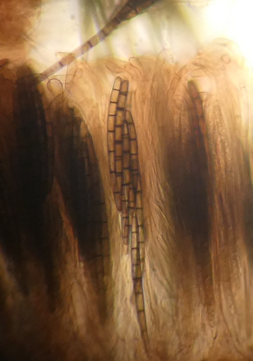The colour of the spores can be very helpful. It is best seen by taking a spore-print from a collected specimen - advice on doing this is in many of the resources below. For some fungi, microscopic examination of the spores may be needed for identification.